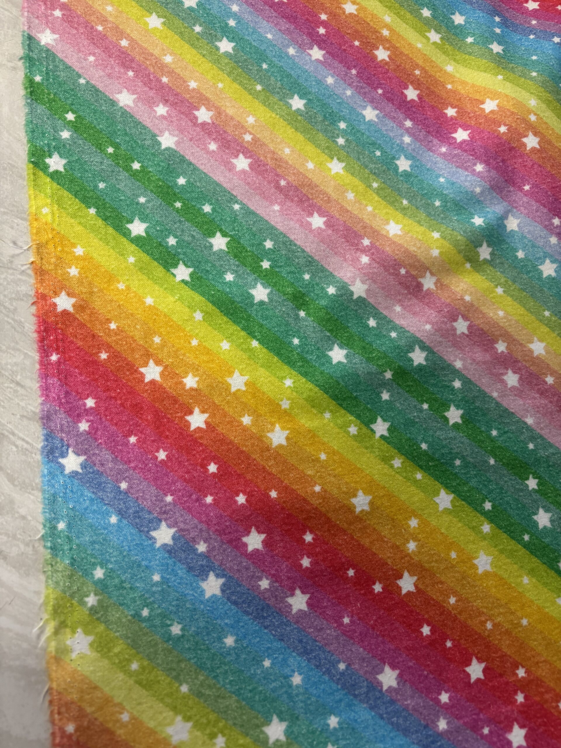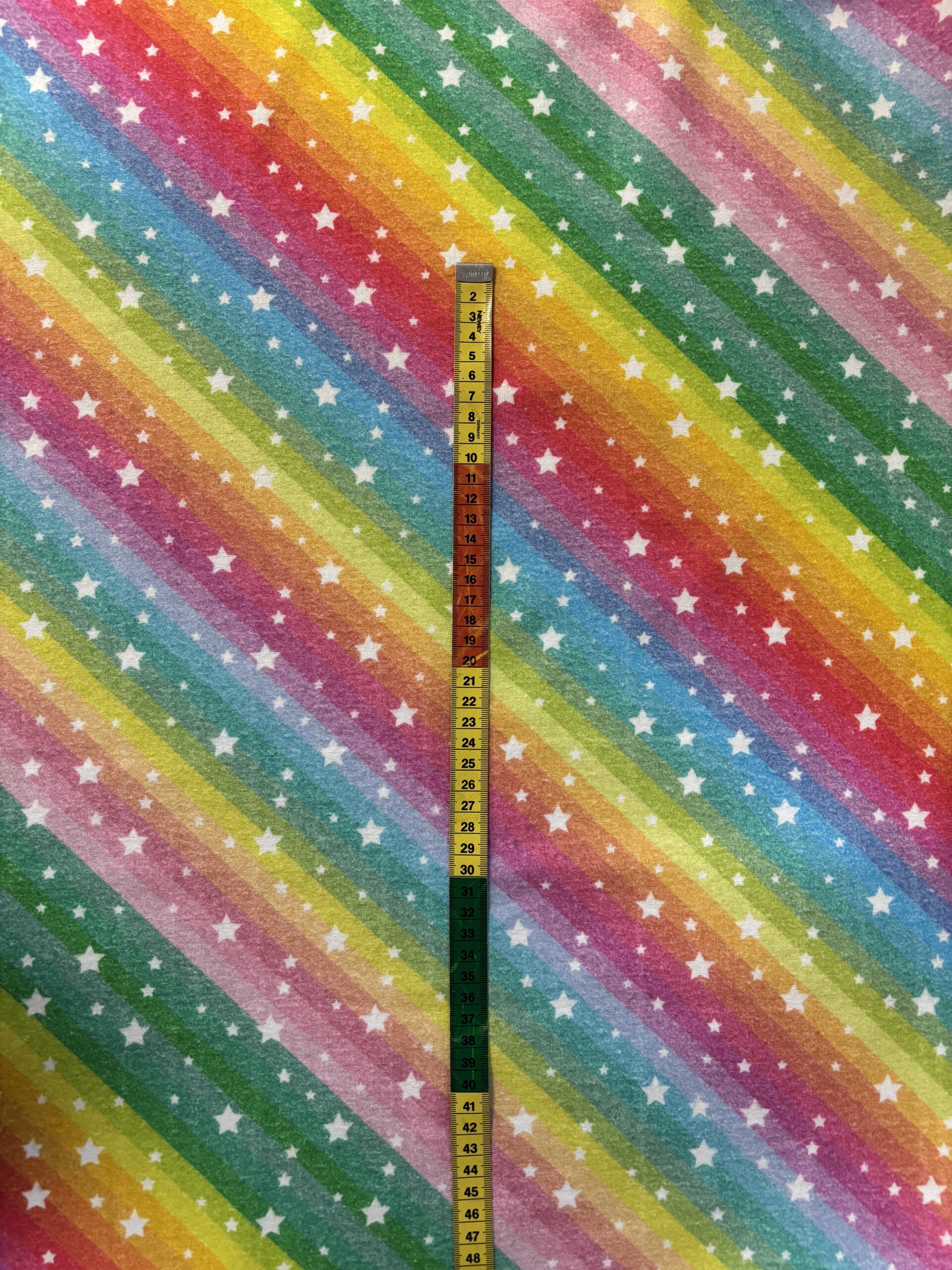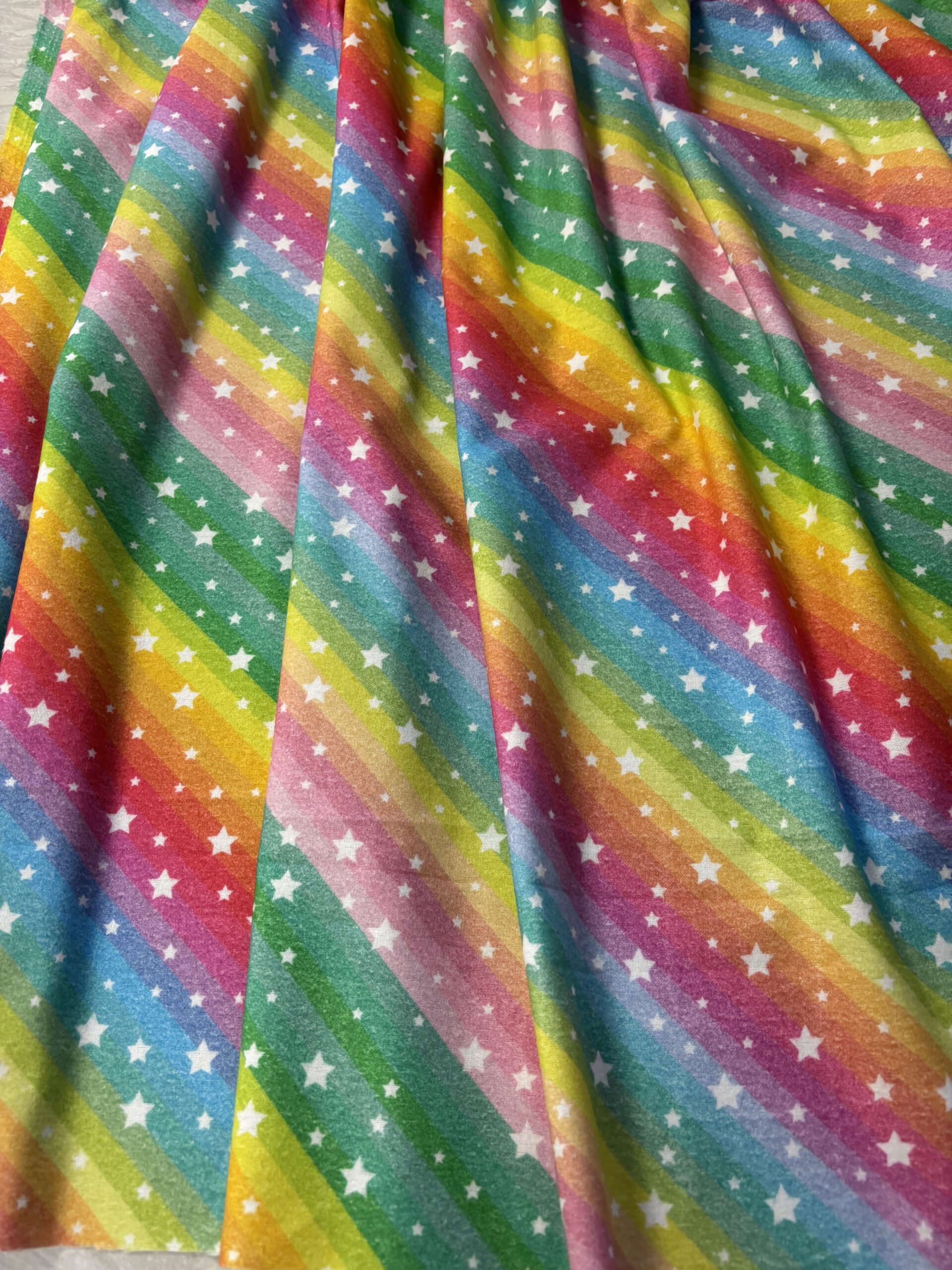 Hinta/10 cm, värikäspohjainen flanellikangas, jossa valkoinen tähtikuviointi, leveys 150 cm, 100% puuvillaa, paino 150 g neliö, kutistuu reilusti