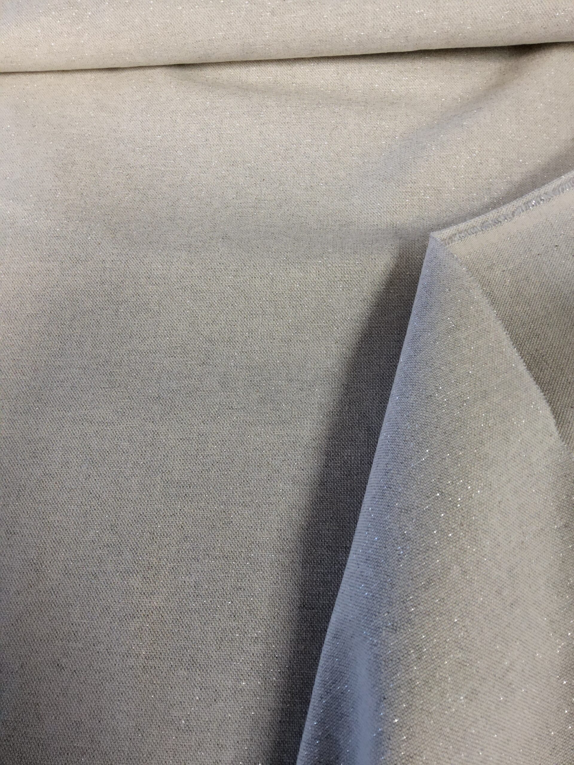 Hinta/10 cm, leveys 140 cm, 100% puuvilla, soveltuu juhlavaatteisiin, verhoiksi, koristetyynyihin ym.,väri hopeanharmaa kiiltävin hopeapistein