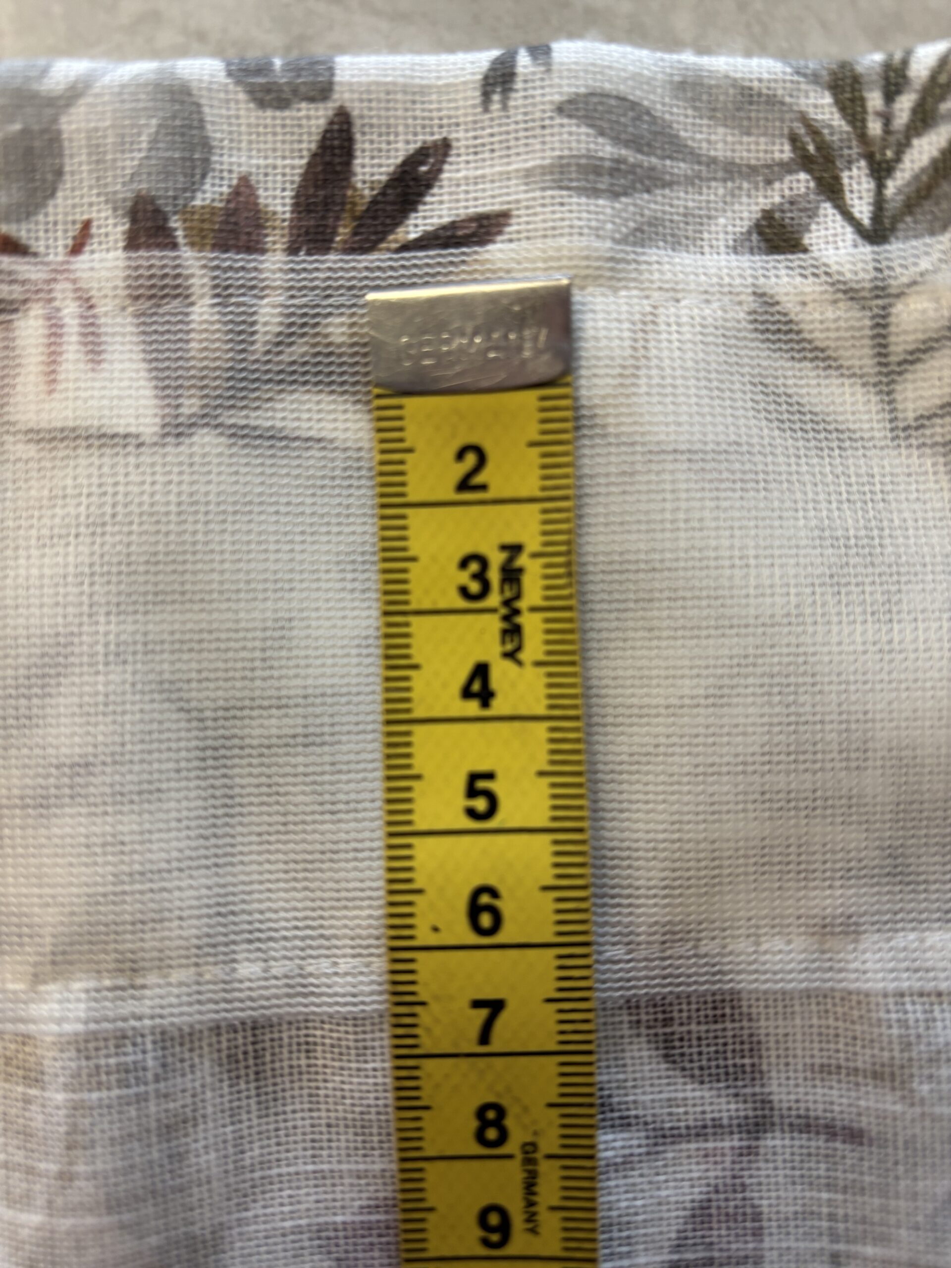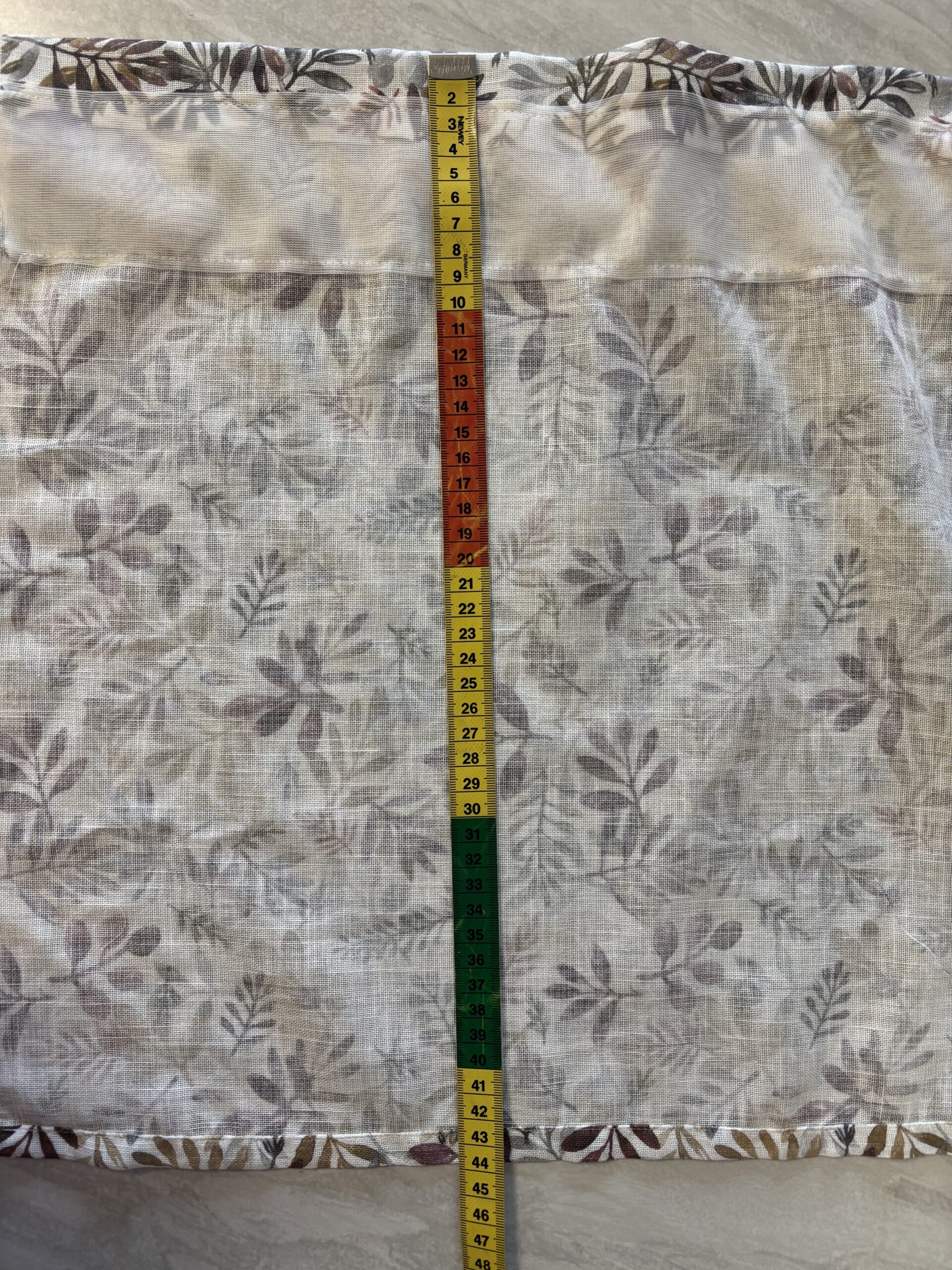 Hinta/ 10 cm, valmis  läpikuultava kappakangas,  puuvilla/polysteria 50/50, ompele vain päät, kokonaiskorkeus 44 cm, yläreunassa  kuja 5,8 cm ja sen yläpuolella harja n. 2 cm, kutistuvuus 3%