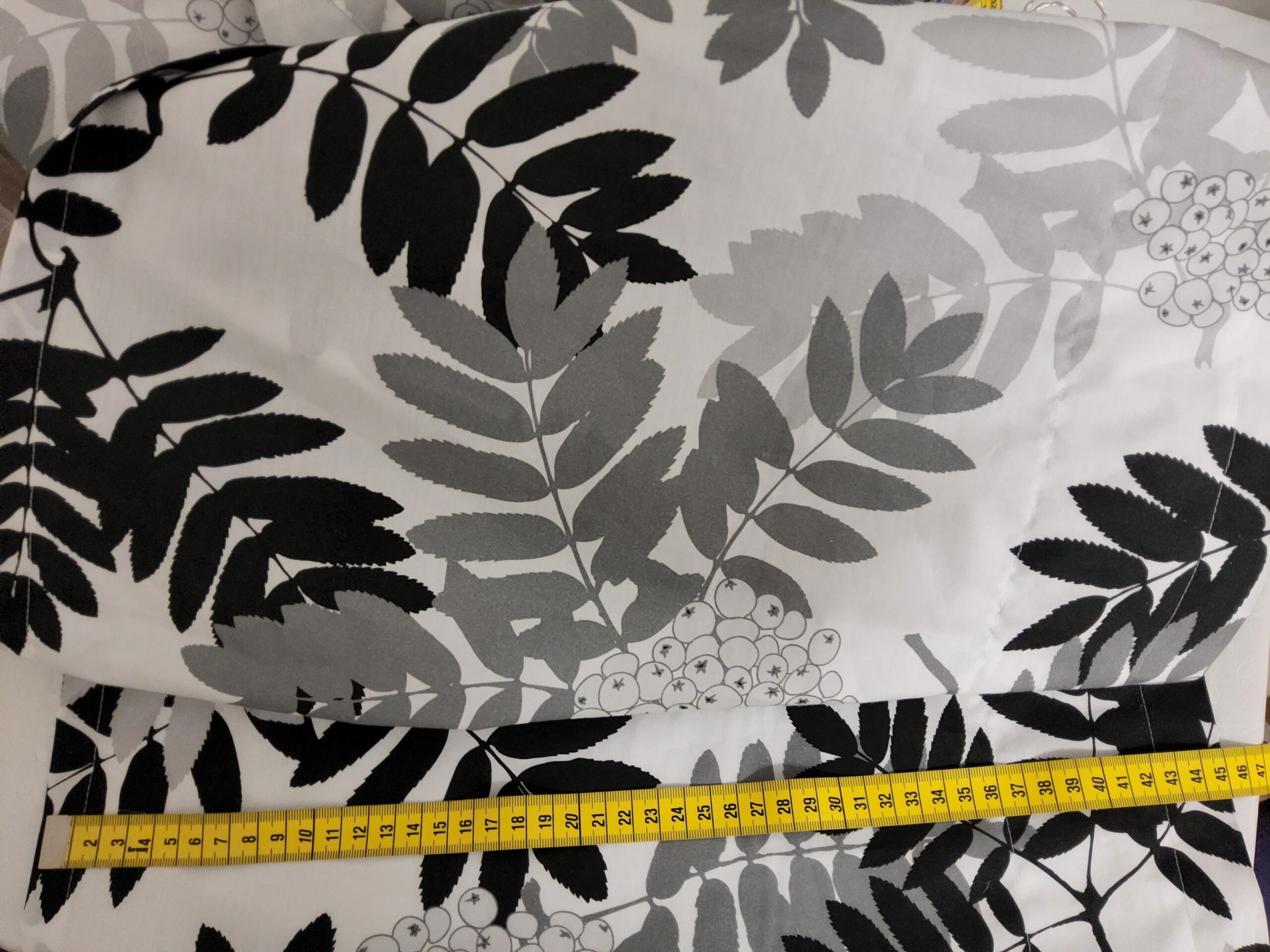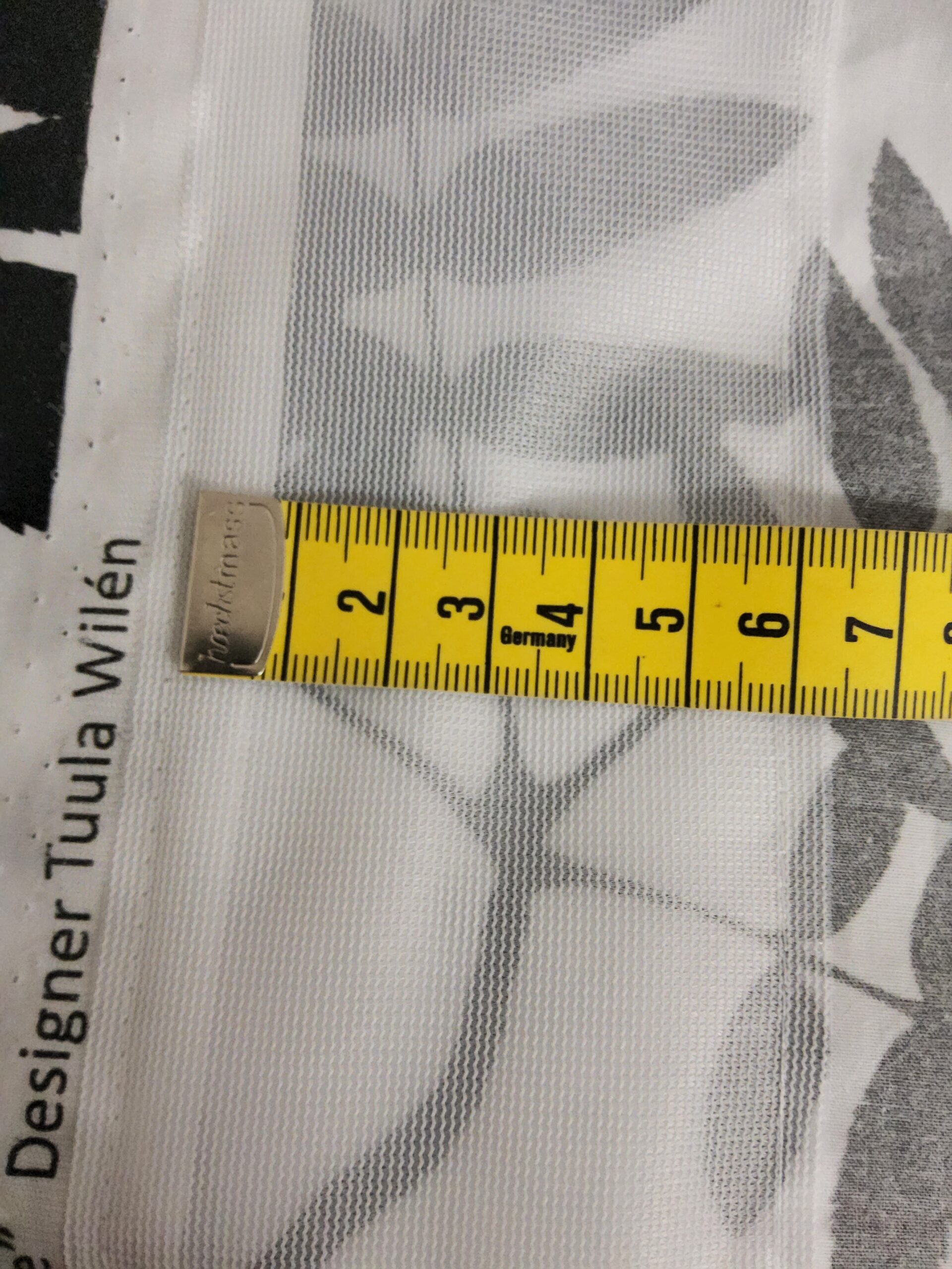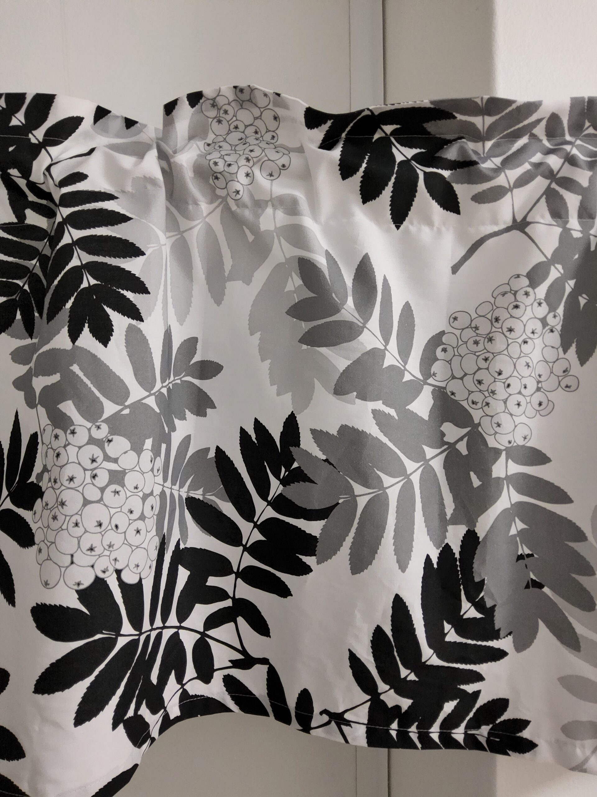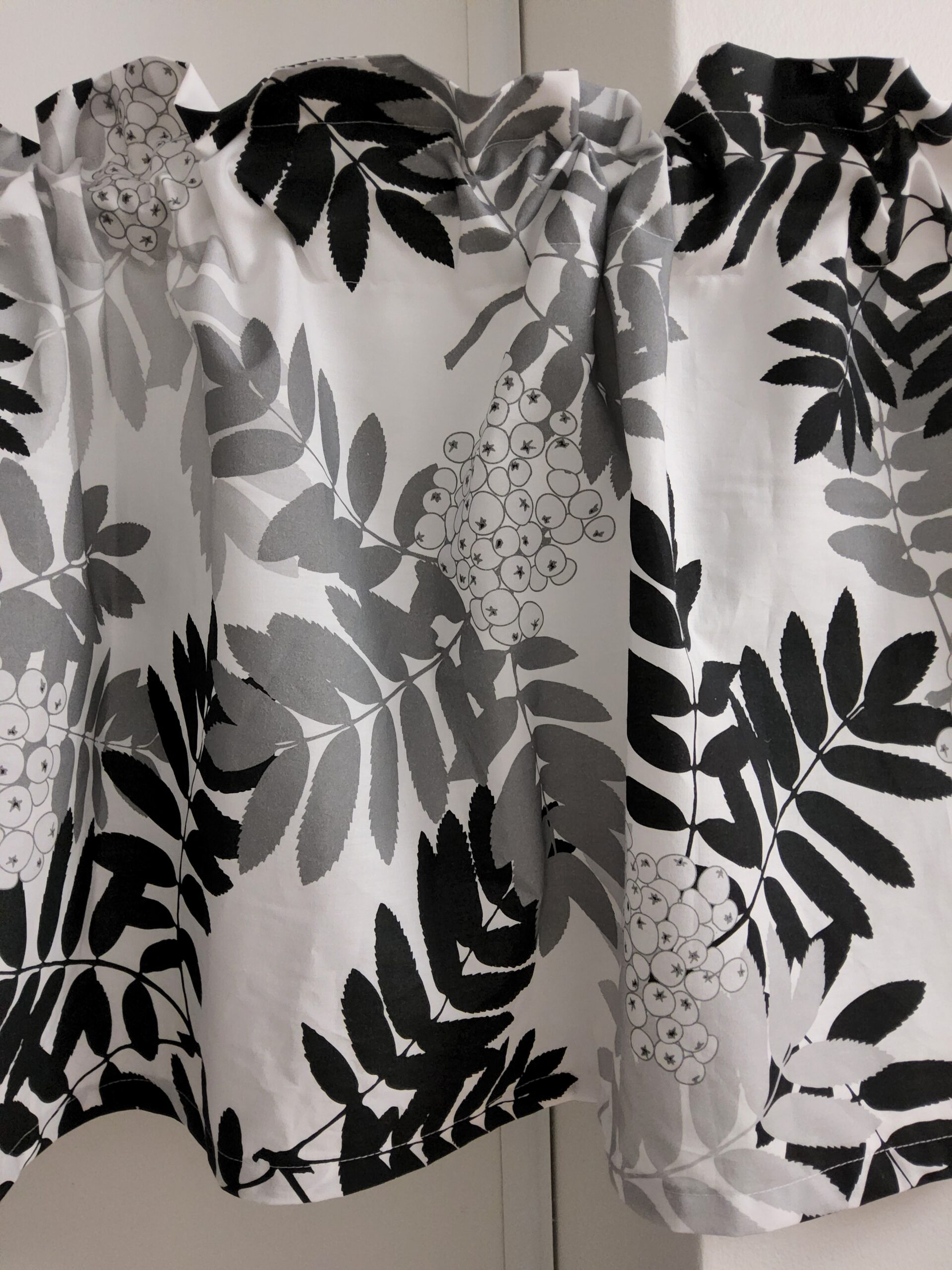 Hinta/ 10 cm, valmis perkaalipuuvillainen kappakangas: ompele vain päät, kokonaiskorkeus 45 cm,verhotankoa varten yläreunassa kuja n.6 cm, voidaan ripustaa myös nipsuihin, 100% puuvillaa