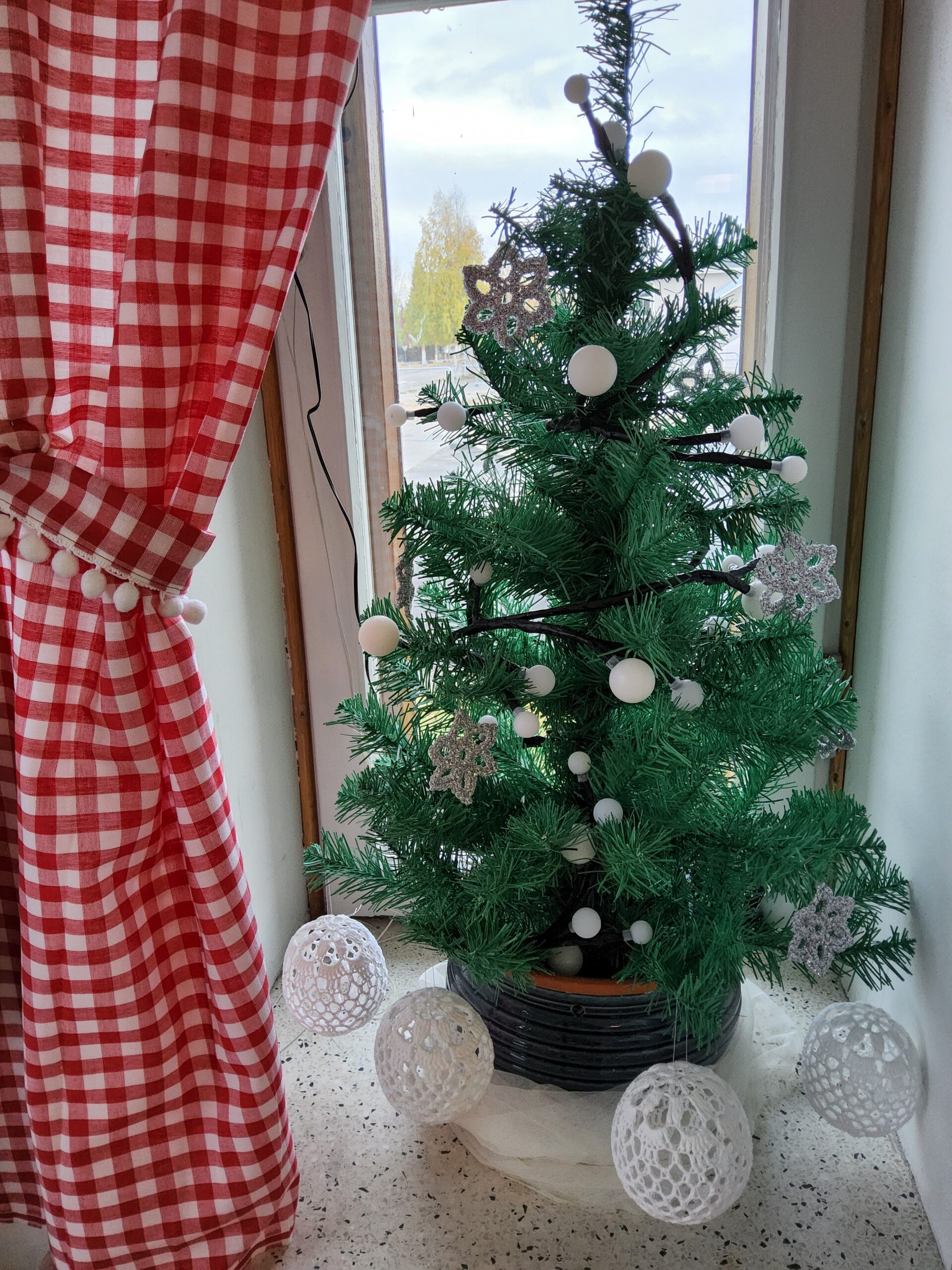 Hinta/10 cm, punavalkoinen pikkuruudullinen (ruutu= 9 mm), puuvillakangas, leveys 160 cm, paino 131 g/neliö