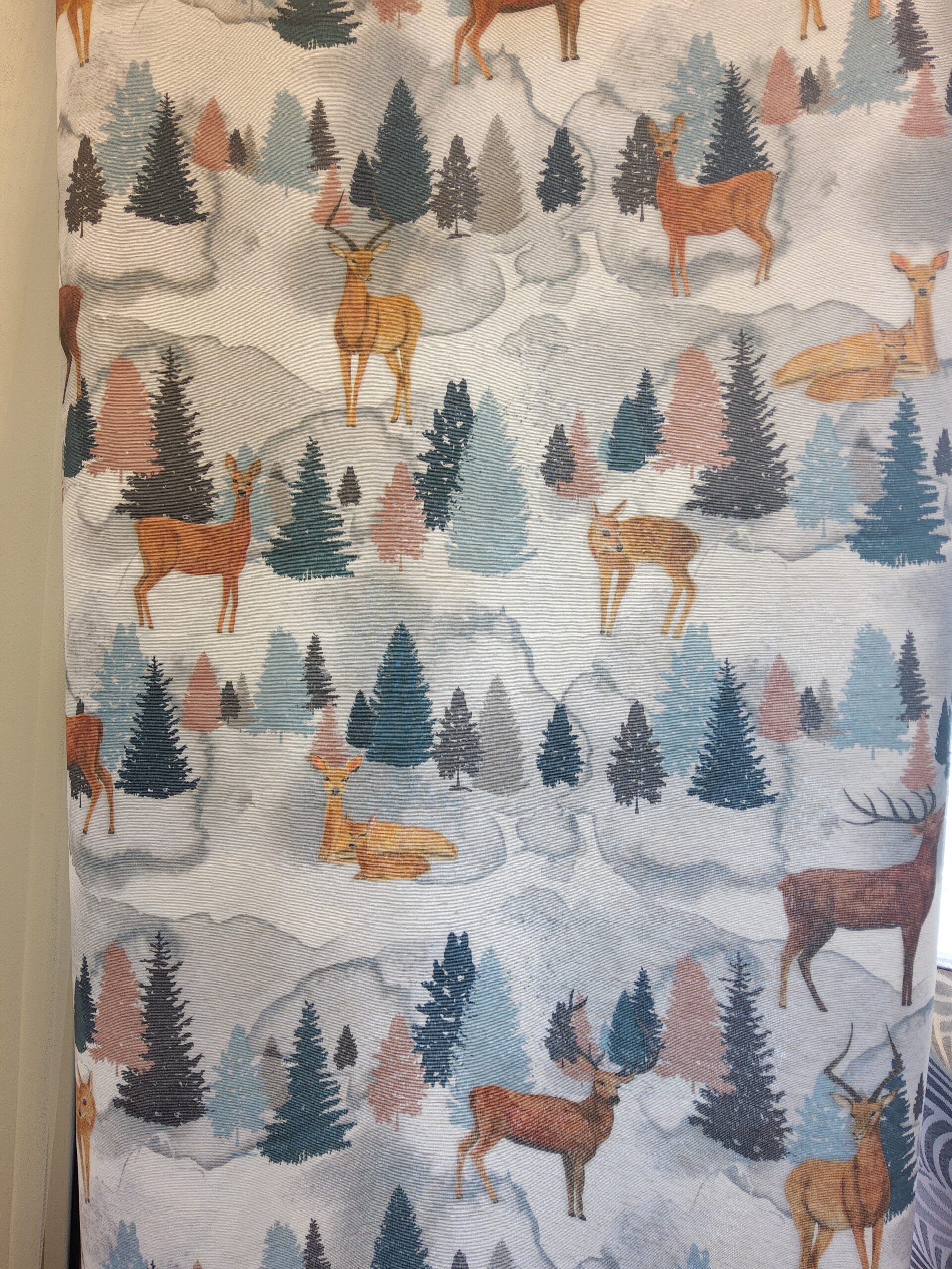 Hinta/10 cm, kaunis kauriskuvioinen verhokangas on 70% puuvillaa- 30% polyesteria, leveys 140 cm, kuvioraportti 69,0 cm, sopii hyvin myös koristetyynyihin