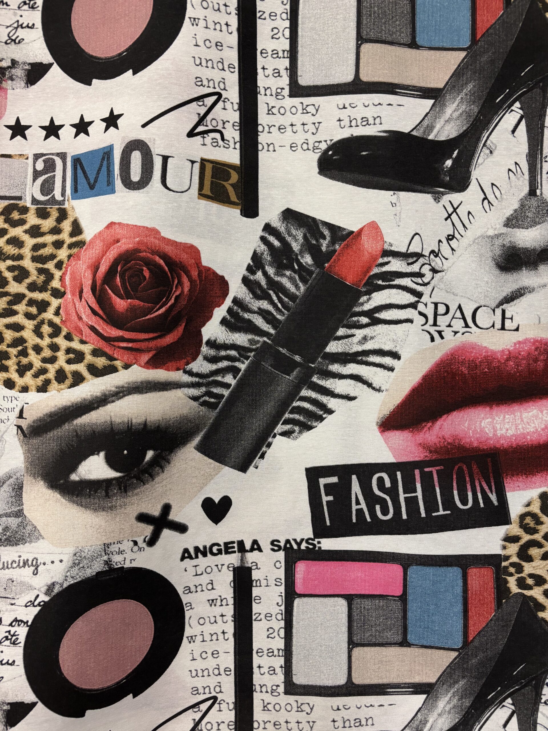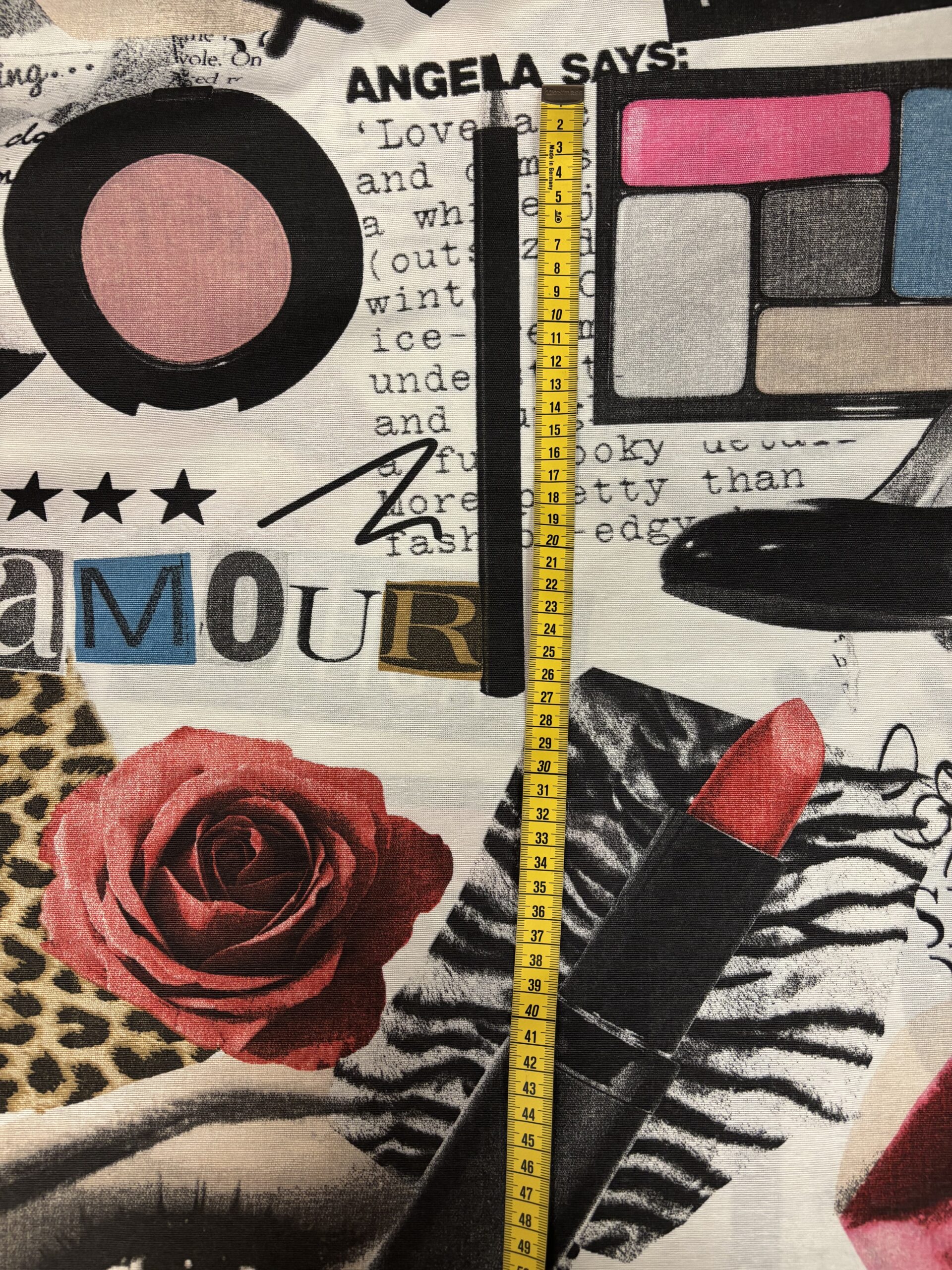 Hinta/ 10 cm, naisellisesti kuvioitu verhokangas, materiaaali 50%puuvillaa, 50% polyesteria; verhoiksi, koristetyynyihin ym.